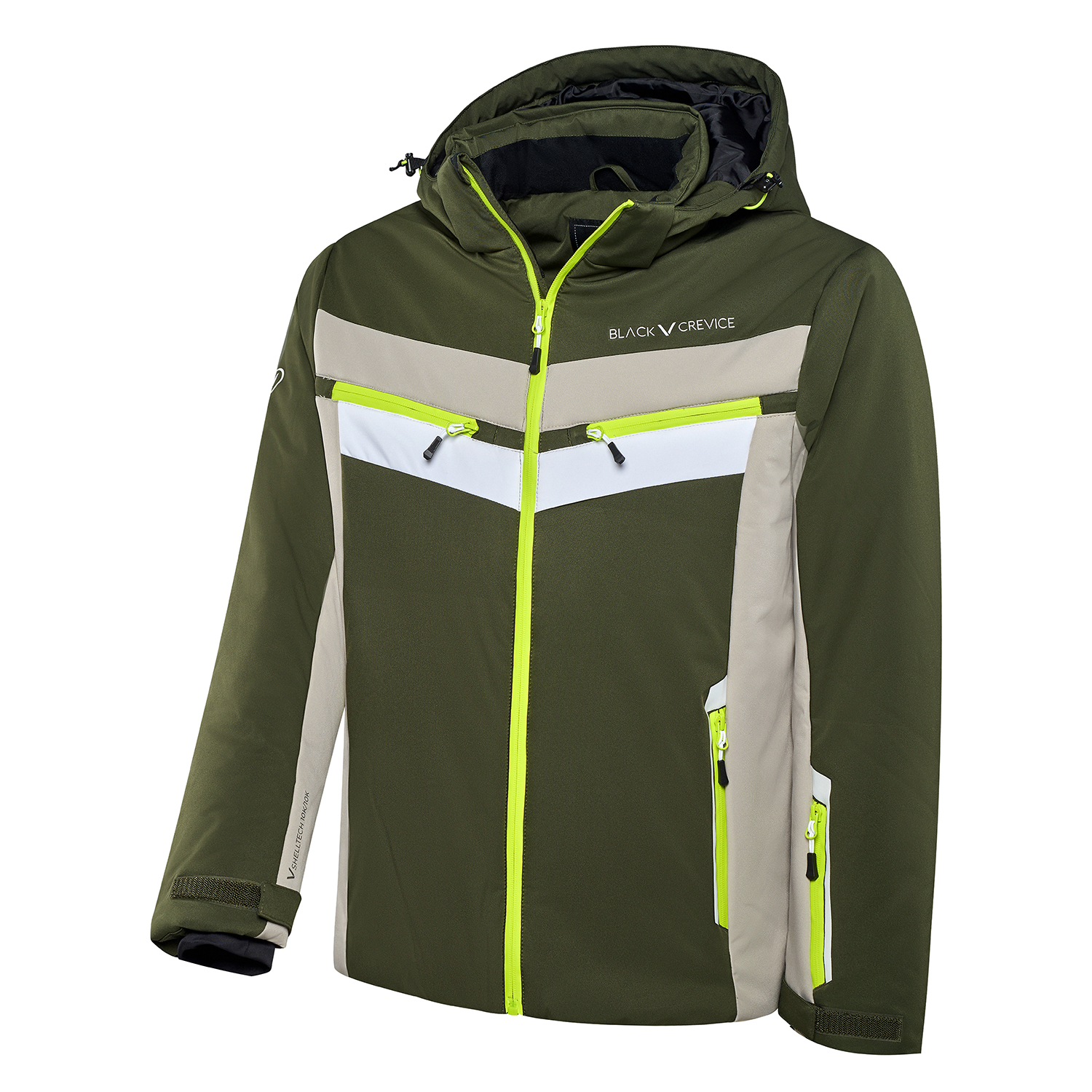 Für optimalen Sitz und zusätzlichen Schutz sorgen verstellbare Ärmelabschlüsse mit Klettverschluss, elastische Innenbündchen sowie ein verstellbarer Saum mit Tunnelzug. Praktische Taschenlösungen – zwei Fronttaschen, zwei Brusttaschen, eine Skipass-Tasche und eine Reißverschluss-Innentasche – bieten genügend Platz für alles, was du am Berg dabeihaben willst.